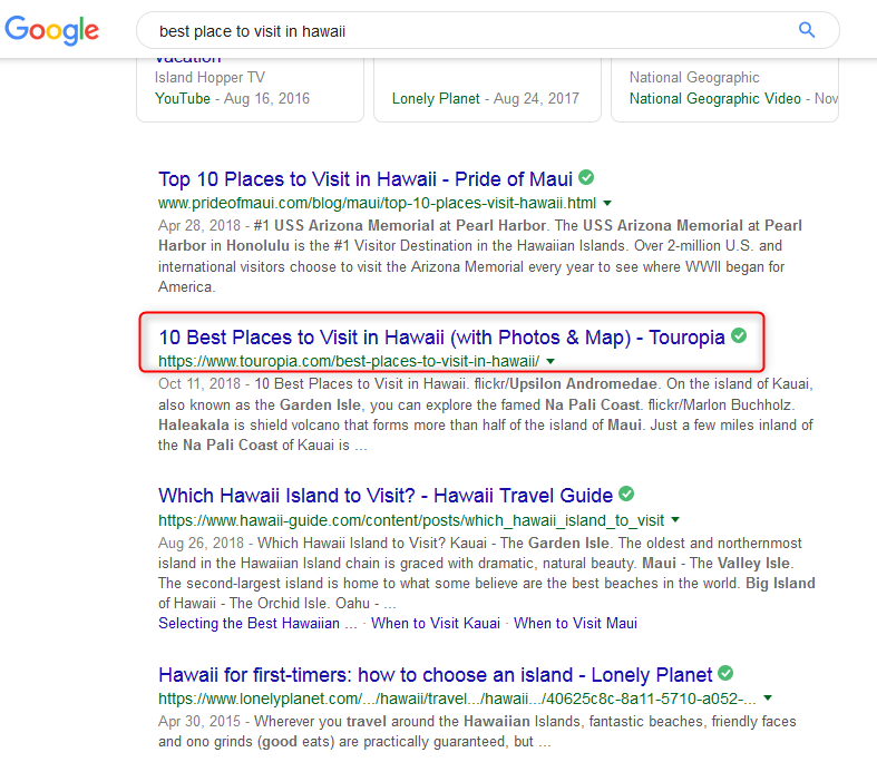 For example, a search for ‘best place to visit in Hawaii’ on Google displayed the following results: